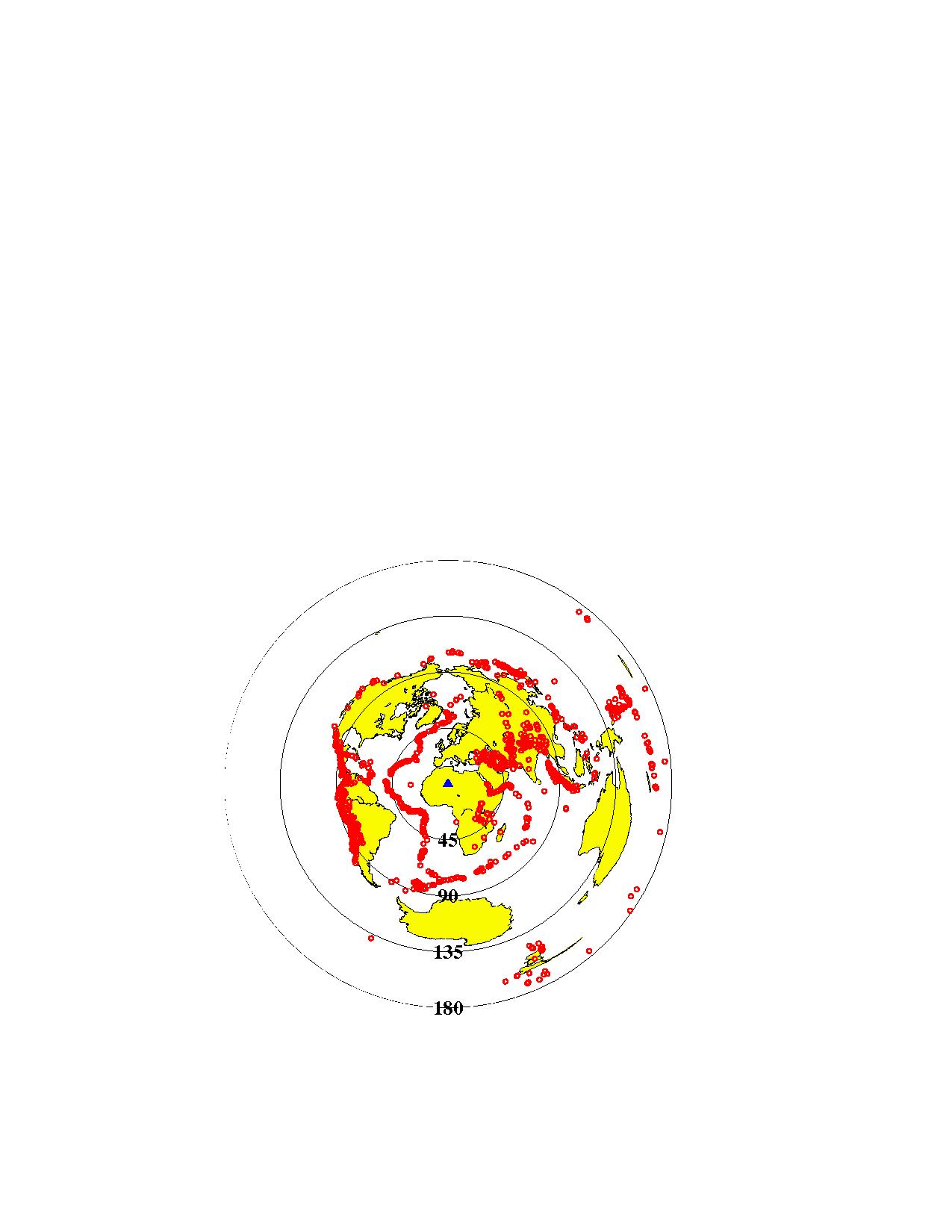 Example 8: Event location map using azimuthal equidistant projection